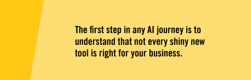 The first step in any AI journey is to understand that not every shiny new tool is right for your business. Success depends on having fit-for-purpose technology that aligns with the stage of your organization’s own evolution.