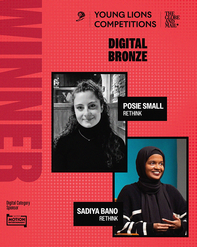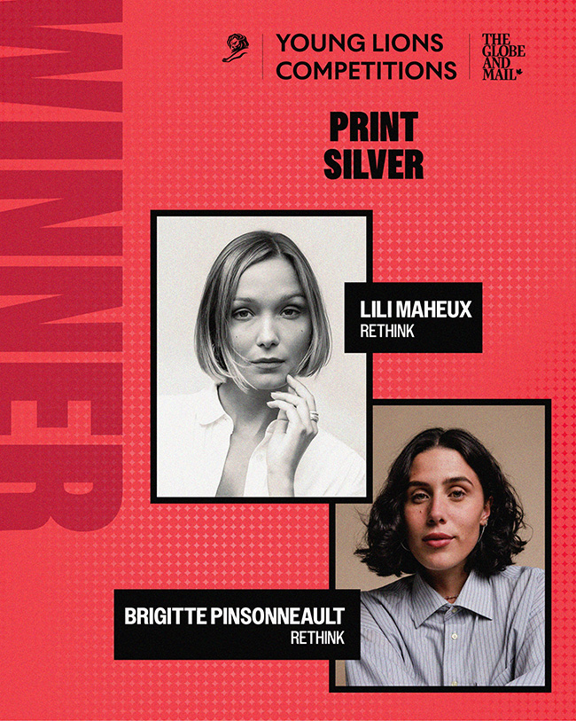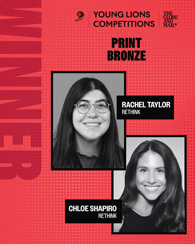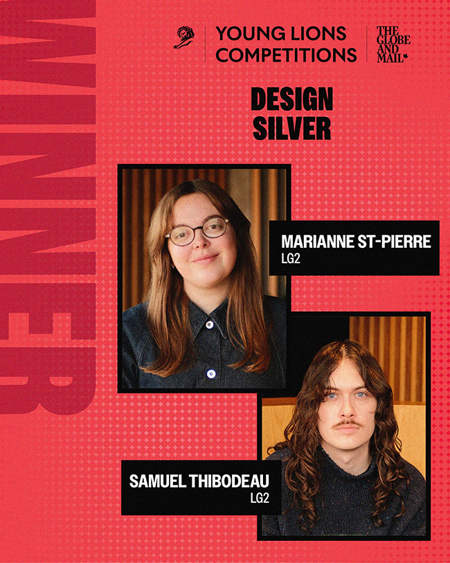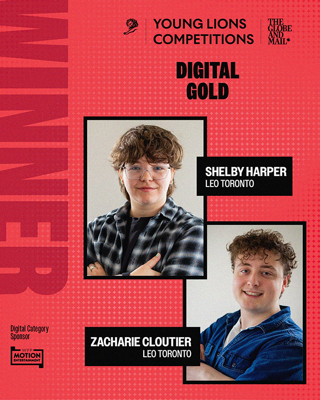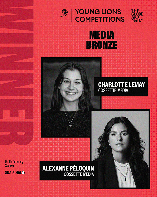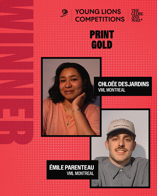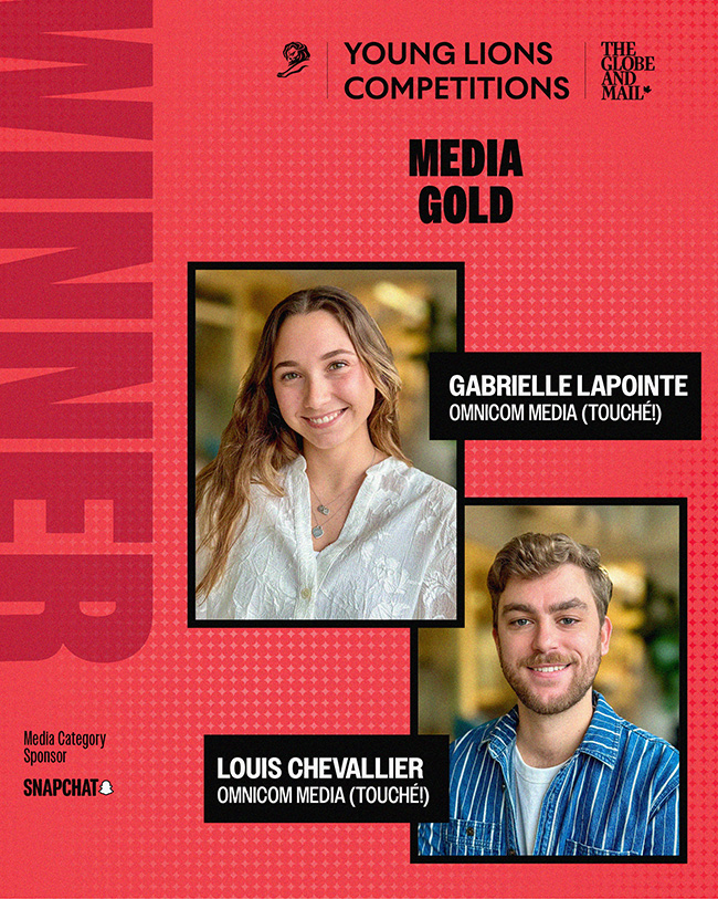 “We’re incredibly proud of the talent represented in this year’s competition, from coast to coast. The calibre of work was exceptional and a powerful reminder of the strength of Canada’s emerging creative and marketing community.” said Marcin Zerek, Head of Trade Marketing, The Globe and Mail. “Canada ranks #3 globally in Young Lions history, and these winners are the next gen of talent carrying that legacy forward.”